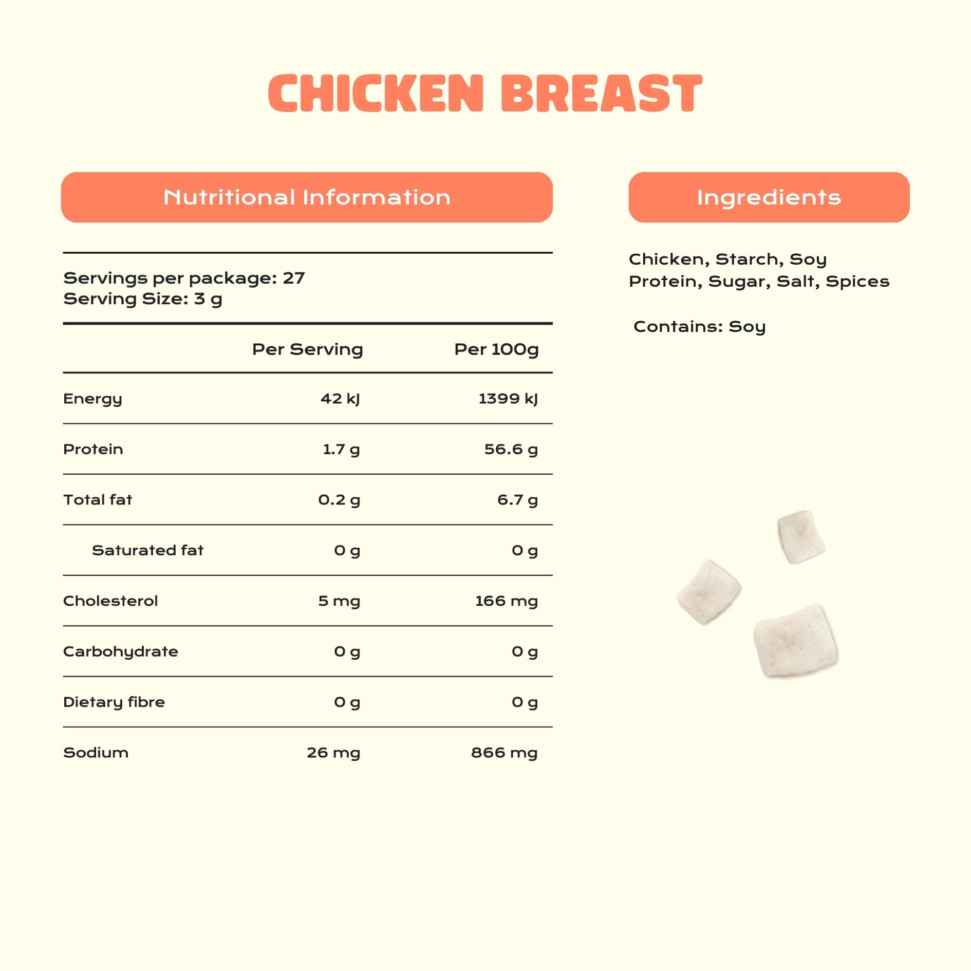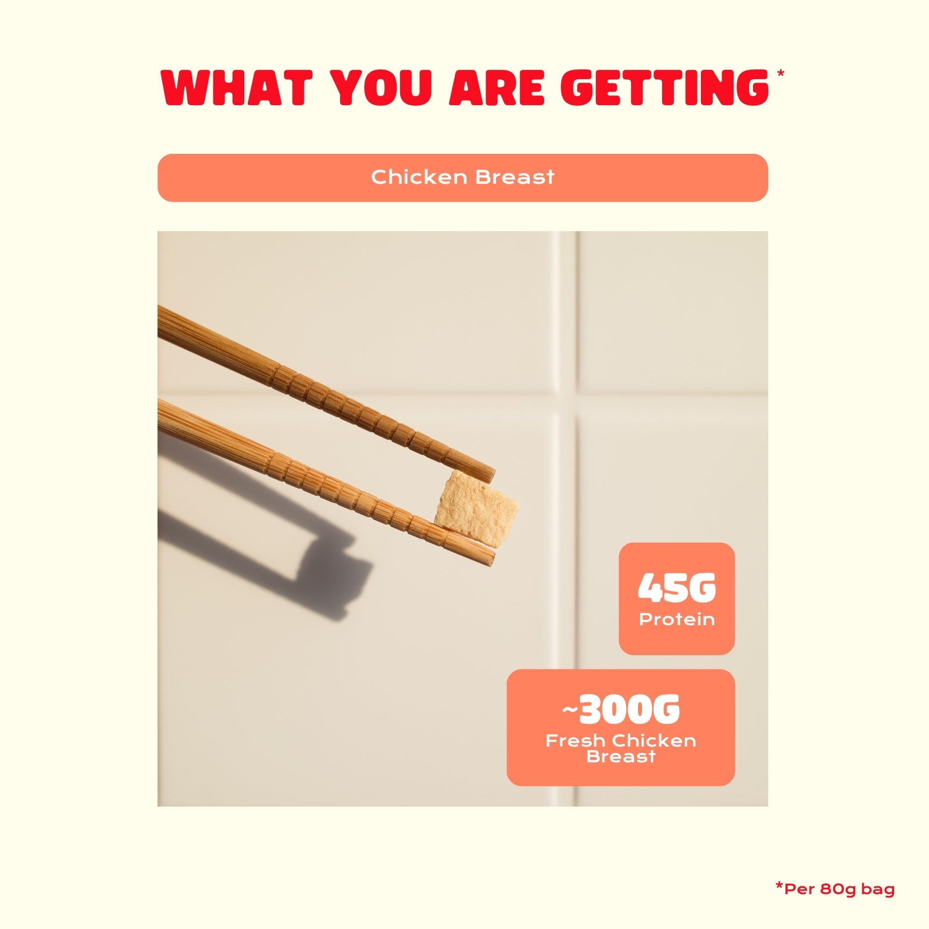 Freeze-dried from 100% real chicken breast, this lean, savory topping packs a powerful 45g of protein per 80g bag, equivalent to around 300g of fresh chicken breast. Add it to noodles, salads, rice bowls, or soups for an instant boost of satisfying, real-meat flavor. Pure, hearty, and incredibly convenient.