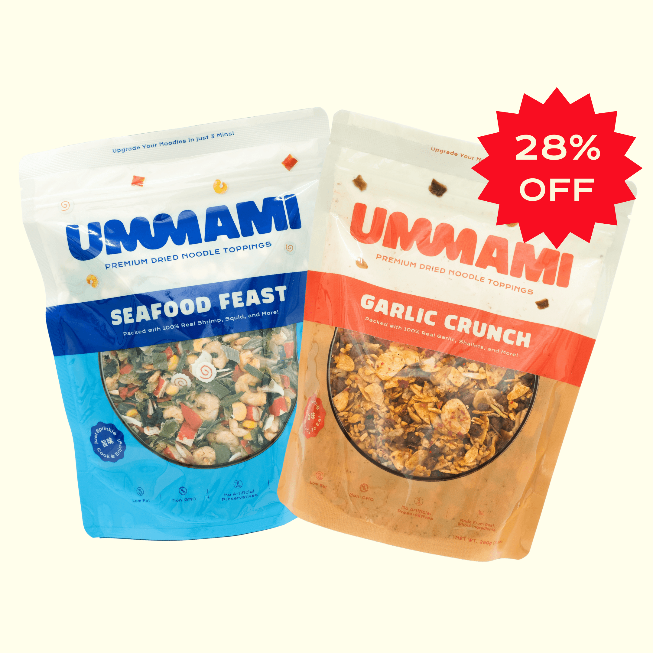 Pick any 2 of our best-selling Ummami mixes and enjoy more flavour for less. Can’t decide on just one? Mix & match two signature toppings to level up every bowl, from bold and spicy to crunchy and umami-rich. There’s a combo for every noodle mood 🍜